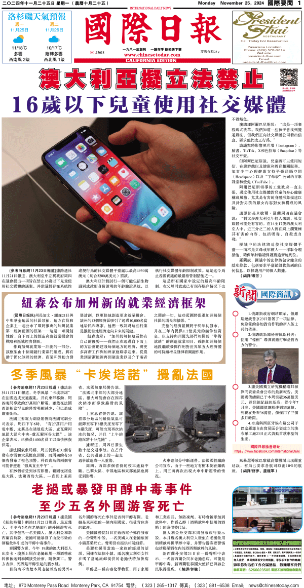 25日國際日報1-國際要聞 发布日期:2024/11/25 来源:國際日報 打印