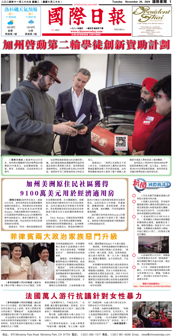 26日國際日報1-國際要聞 发布日期:2024/11/26 来源:國際日報 打印