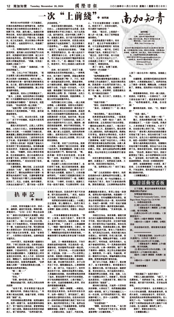 26日國際日報12-南加知青 发布日期:2024/11/26 来源: 打印