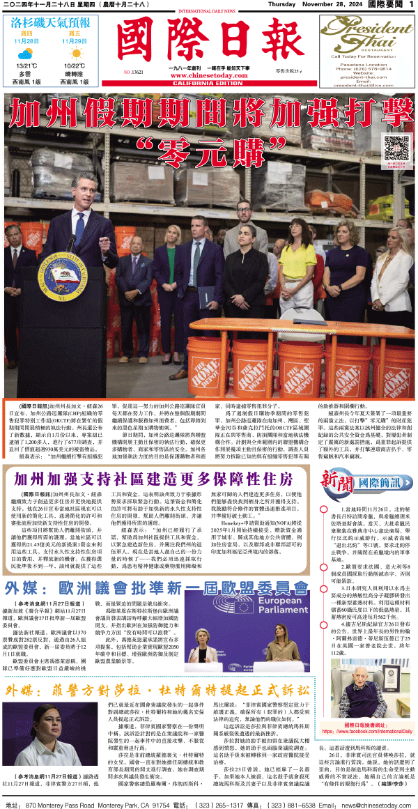 28日國際日報1-國際要聞 发布日期:2024/11/28 来源:國際日報 打印