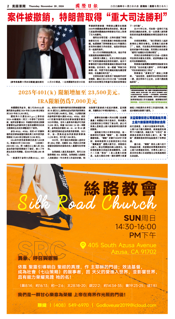 28日國際日報2-美國要聞 发布日期:2024/11/29 来源: 打印