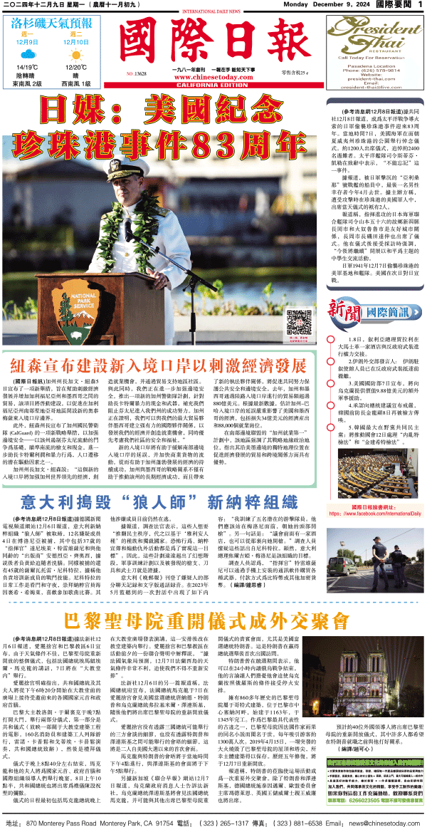 9日國際日報1-國際要聞 发布日期:2024/12/9 来源:國際日報 打印