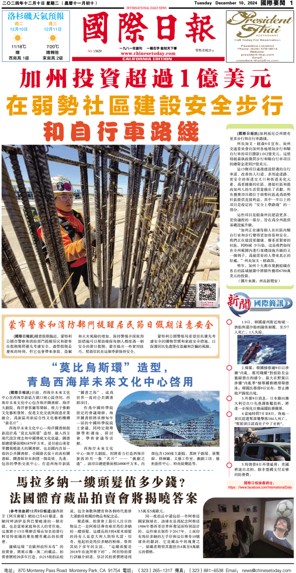 10日國際日報1-國際要聞 发布日期:2024/12/10 来源:國際日報 打印