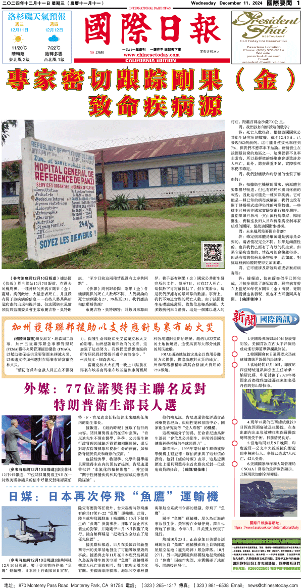 11日國際日報1-國際要聞 发布日期:2024/12/11 来源:國際日報 打印