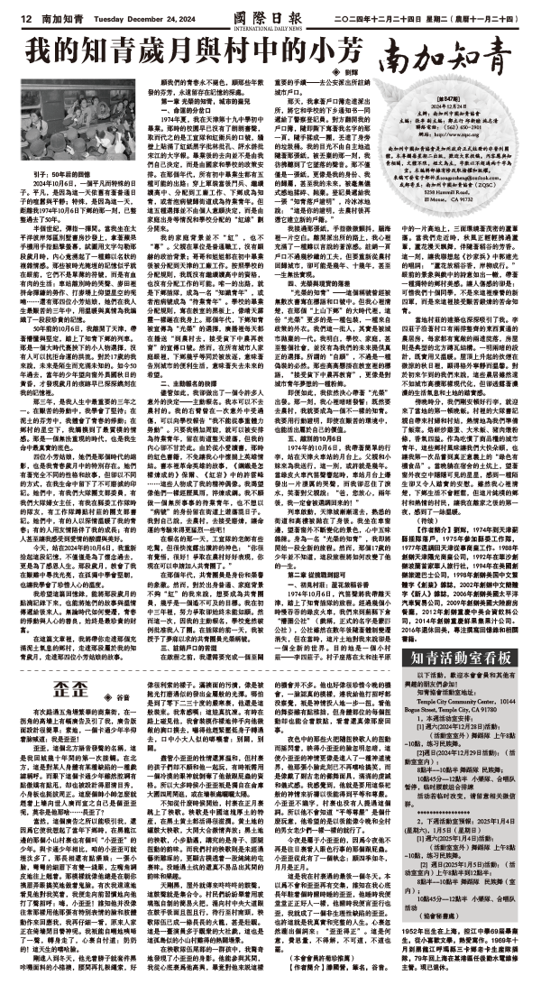 24日國際日報12-南加知青 发布日期:2024/12/24 来源: 打印
