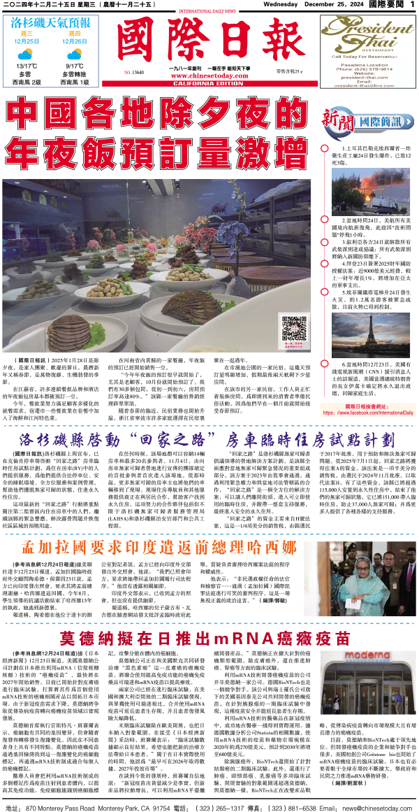 25日國際日報1-國際要聞 发布日期:2024/12/25 来源:國際日報 打印
