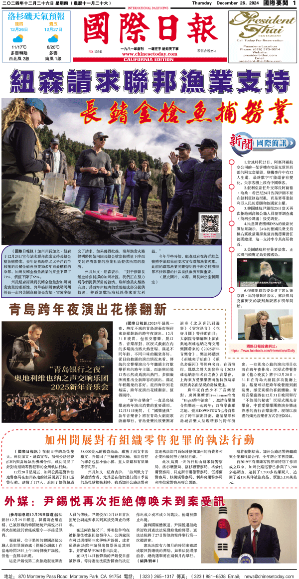 26日國際日報1-國際要聞 发布日期:2024/12/27 来源:國際日報 打印