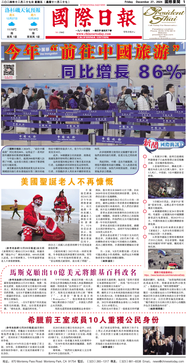 27日國際日報1-國際要聞 发布日期:2024/12/27 来源:國際日報 打印