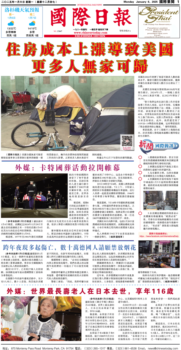 6日國際日報1-國際要聞 发布日期:2025/1/6 来源:國際日報 打印