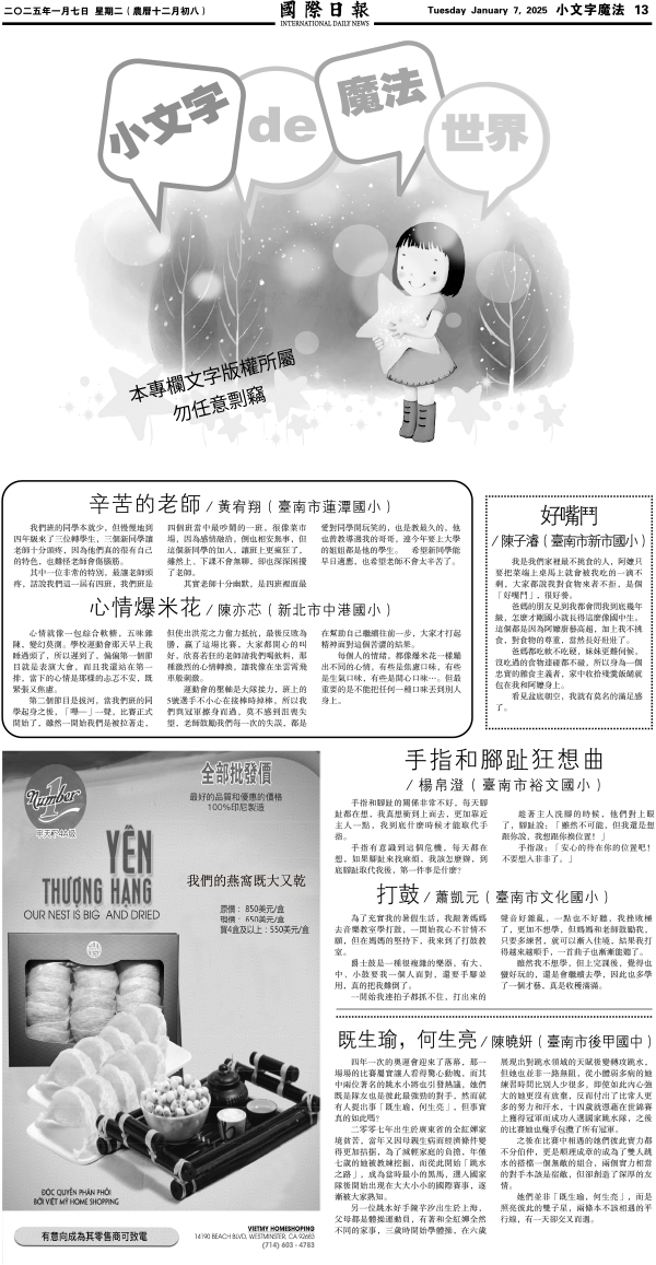 7日國際日報13-小文字魔法 发布日期:2025/1/7 来源:國際日報 打印