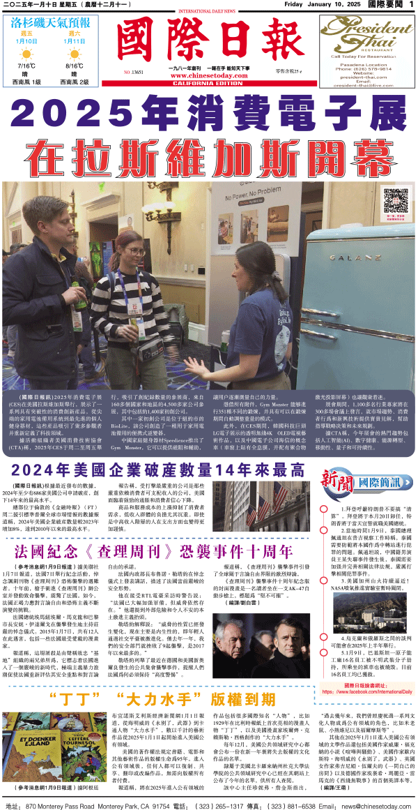10日國際日報1-國際要聞 发布日期:2025/1/13 来源:國際日報 打印