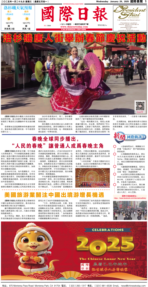 29日國際日報1-國際要聞 发布日期:2025/2/4 来源:國際日報 打印