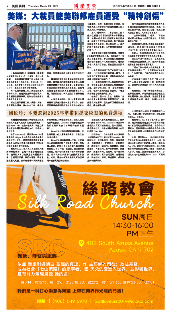 20日國際日報2-美國要聞 发布日期:2025/3/21 来源: 打印