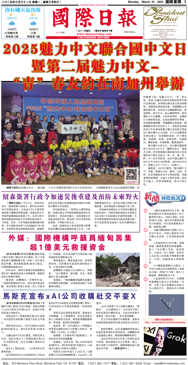 31日國際日報1-國際要聞 发布日期:2025/4/1 来源:國際日報 打印