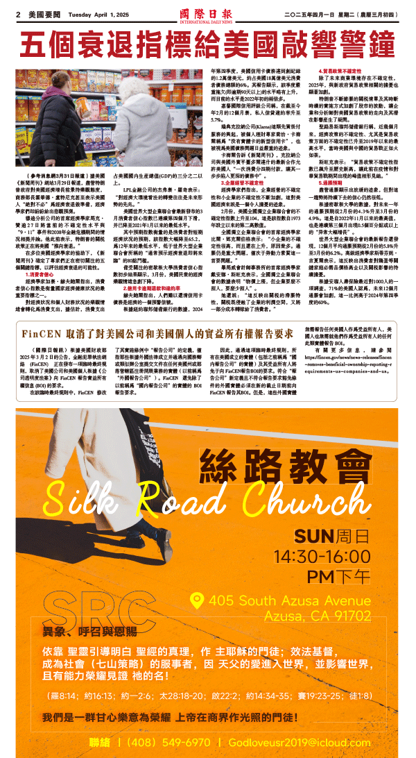 1日國際日報2-美國要聞 发布日期:2025/4/2 来源: 打印