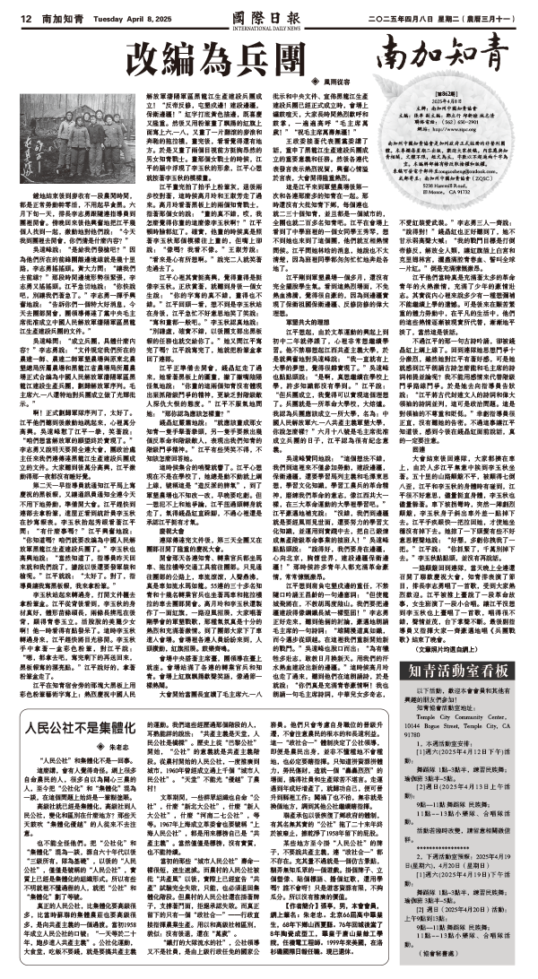 8日國際日報12-南加知青 发布日期:2025/4/8 来源: 打印