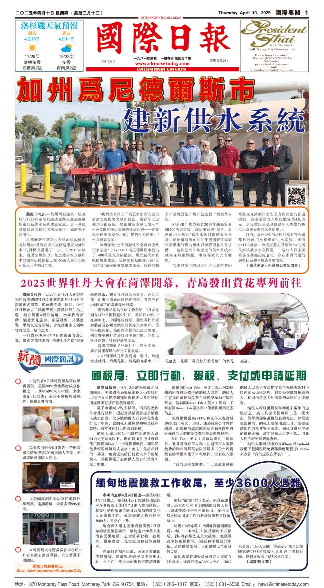 10日國際日報1-國際要問 发布日期:2025/4/10 来源:國際日報 打印