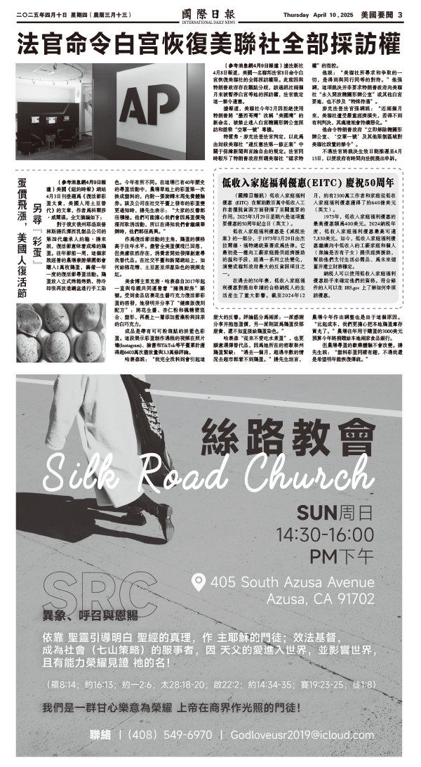 10日國際日報3-美國要聞 发布日期:2025/4/11 来源: 打印