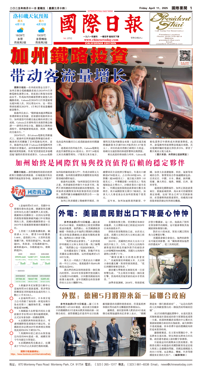 11日國際日報1-國際要問 发布日期:2025/4/12 来源:國際日報 打印