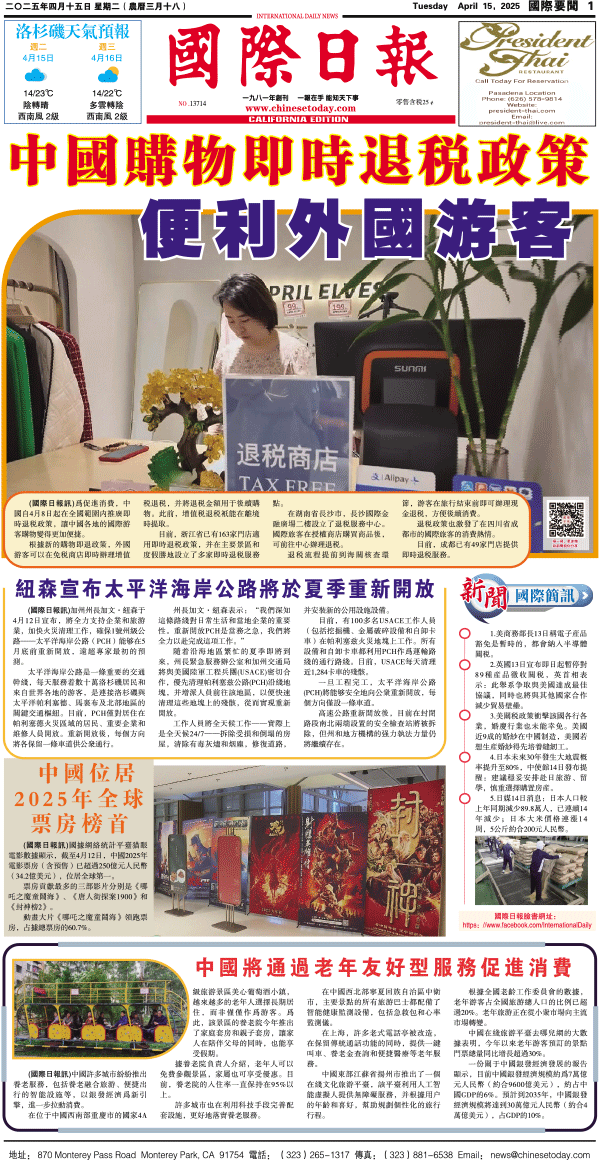 15日國際日報1-國際要聞 发布日期:2025/4/16 来源:國際日報 打印