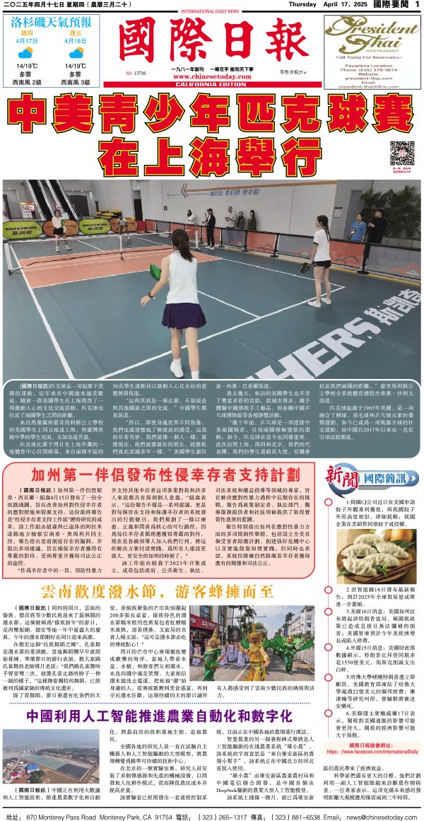 17日國際日報1-國際要聞 发布日期:2025/4/17 来源:國際日報 打印