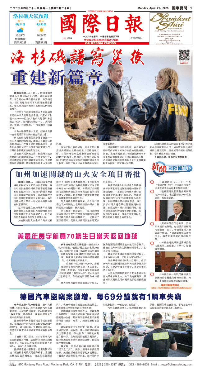 21日國際日報1-國際要聞 发布日期:2025/4/22 来源:國際日報 打印