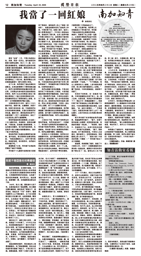 22日國際日報12-南加知青 发布日期:2025/4/23 来源: 打印