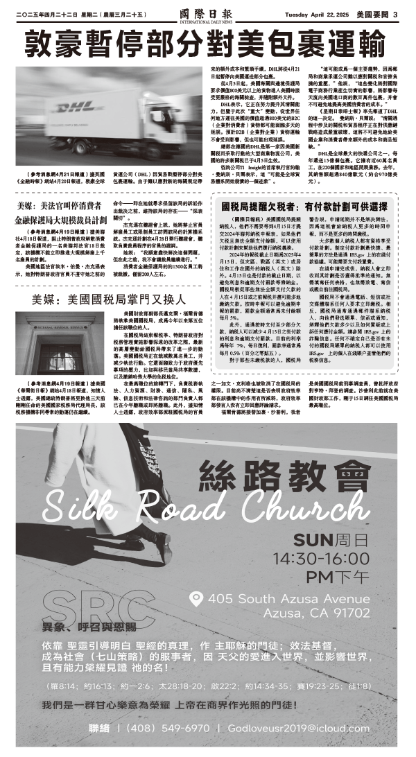 22日國際日報3-美國要聞 发布日期:2025/4/23 来源: 打印