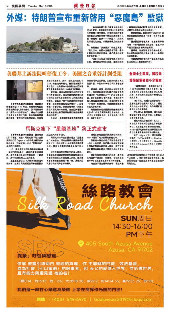 6日國際日報2-美國要聞 发布日期:2025/5/7 来源: 打印