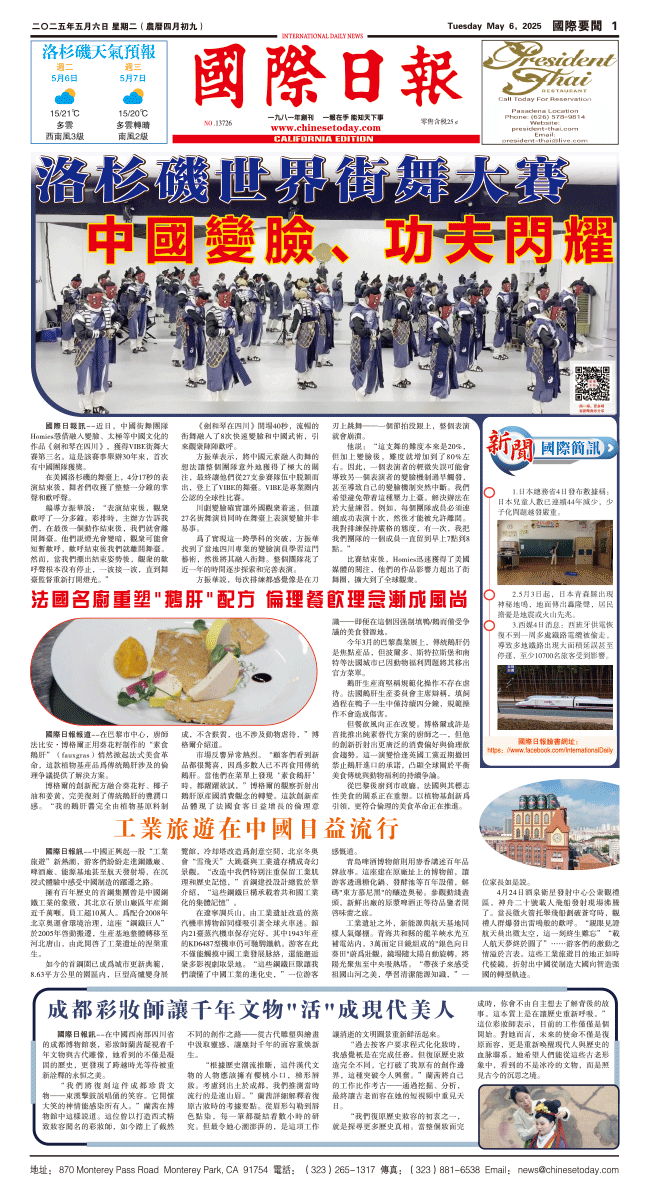 6日國際日報1-國際要聞 发布日期:2025/5/7 来源:國際日報 打印