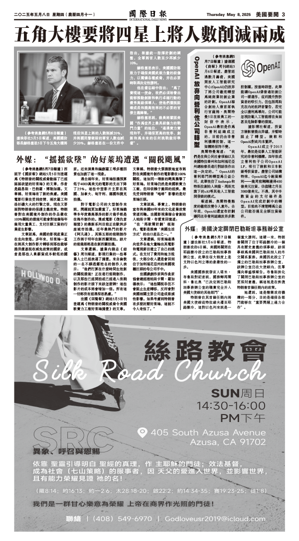 8日國際日報3-美國要聞 发布日期:2025/5/9 来源: 打印