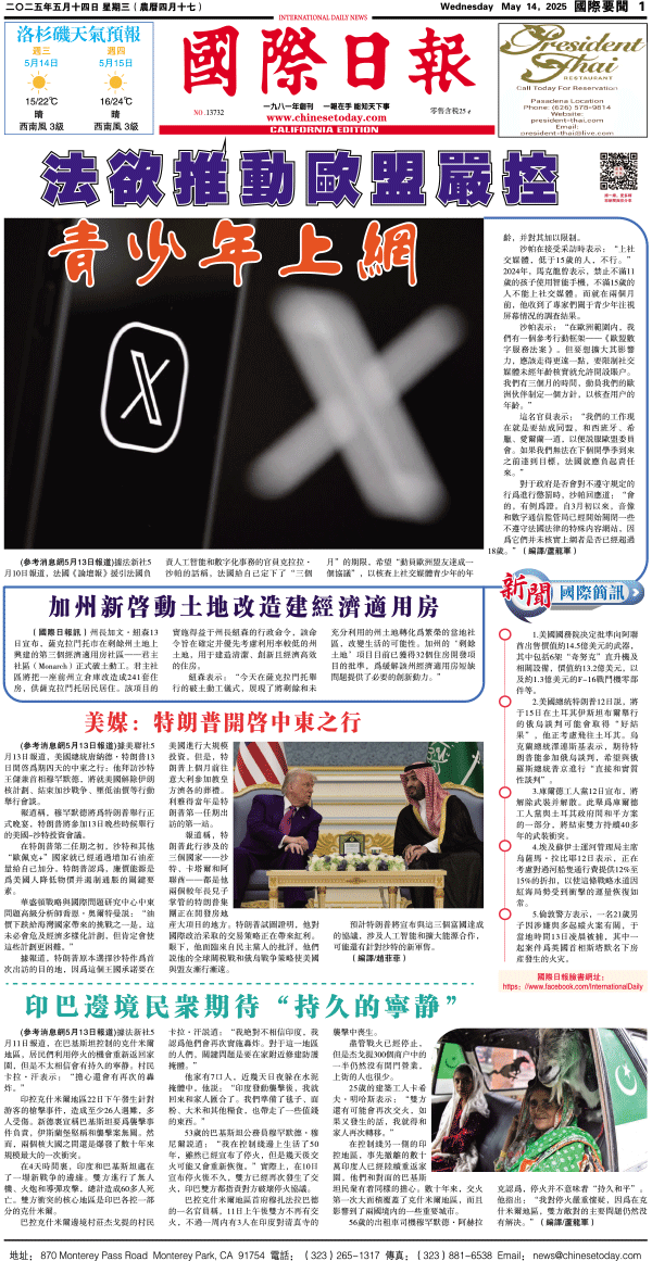 14日國際日報1-國際要聞 发布日期:2025/5/14 来源:國際日報 打印