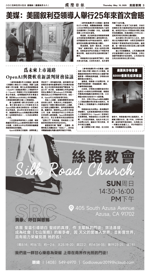 15日國際日報3-美國要聞 发布日期:2025/5/16 来源: 打印