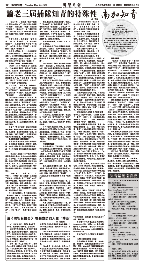 20日國際日報12-南加知青 发布日期:2025/5/21 来源: 打印