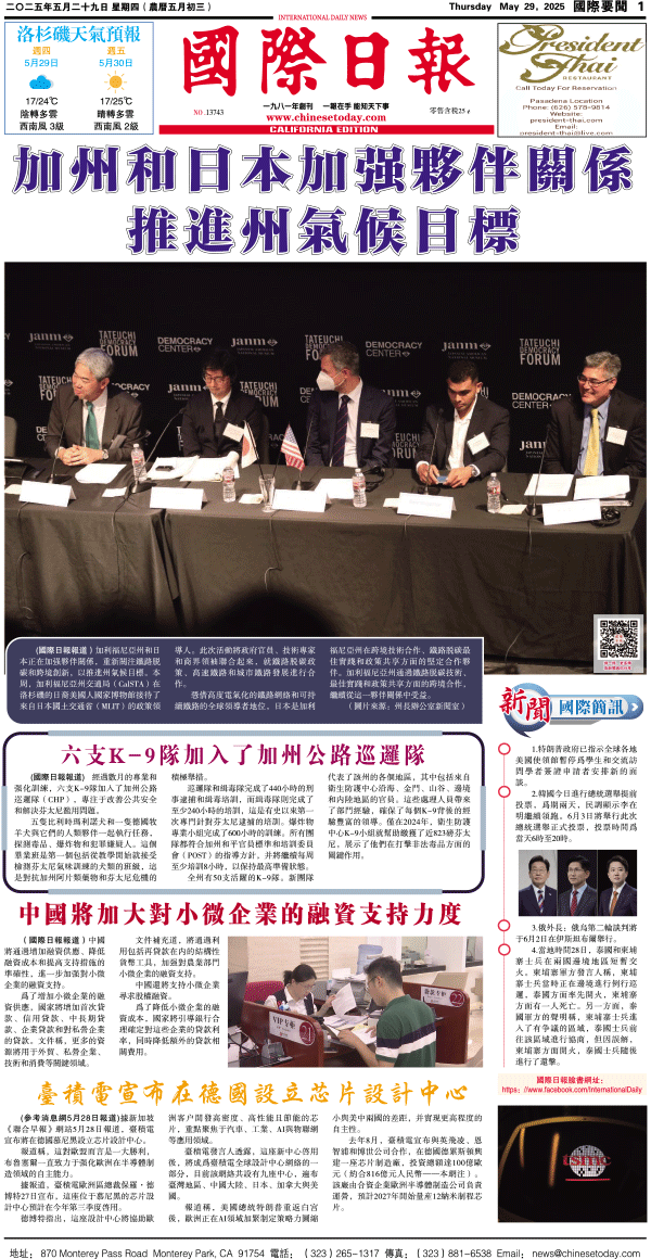 29日國際日報1-國際要聞 发布日期:2025/5/29 来源:國際日報 打印