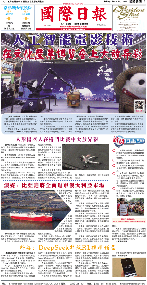30日國際日報1-國際要聞 发布日期:2025/5/30 来源:國際日報 打印