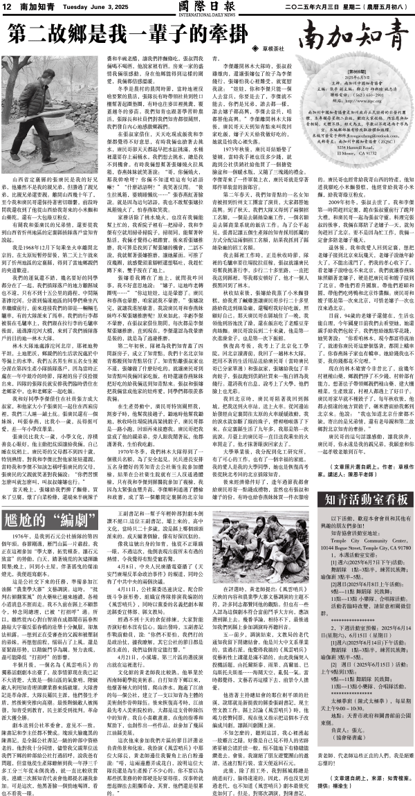 3日國際日報12-南加知青 发布日期:2025/6/3 来源:國際日報 打印