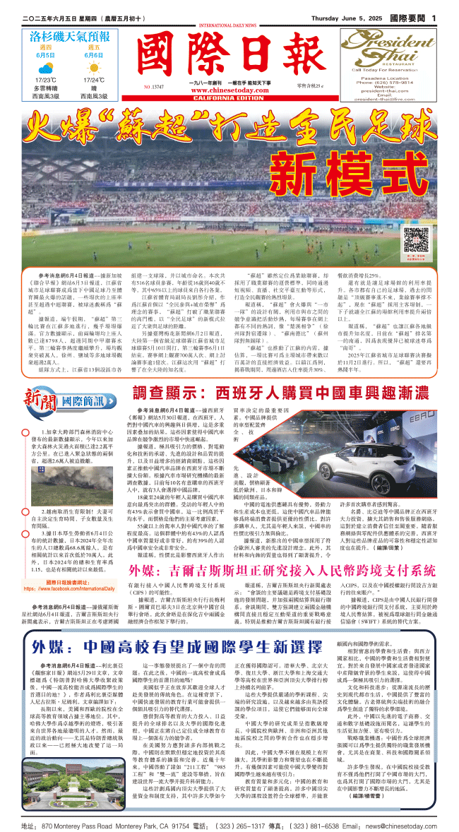 5日國際日報1-國際要聞 发布日期:2025/6/5 来源:國際日報 打印