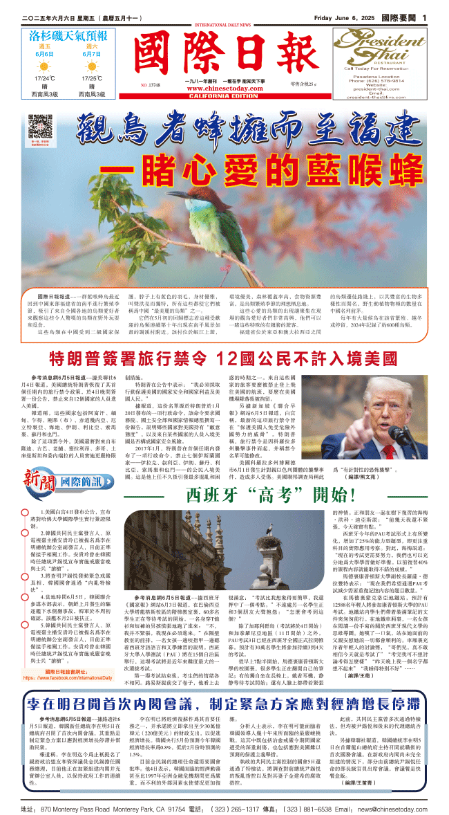 6日國際日報1-國際要聞 发布日期:2025/6/7 来源:國際日報 打印