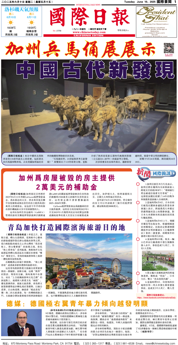 10日國際日報1-國際要聞 发布日期:2025/6/10 来源:國際日報 打印