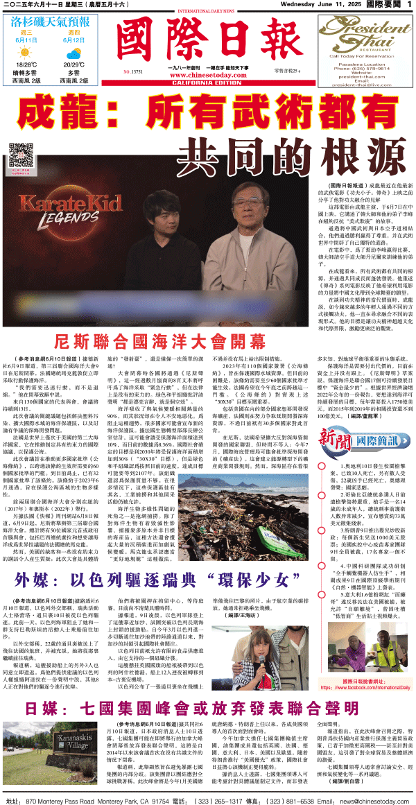 11日國際日報1-國際要聞 发布日期:2025/6/11 来源:國際日報 打印