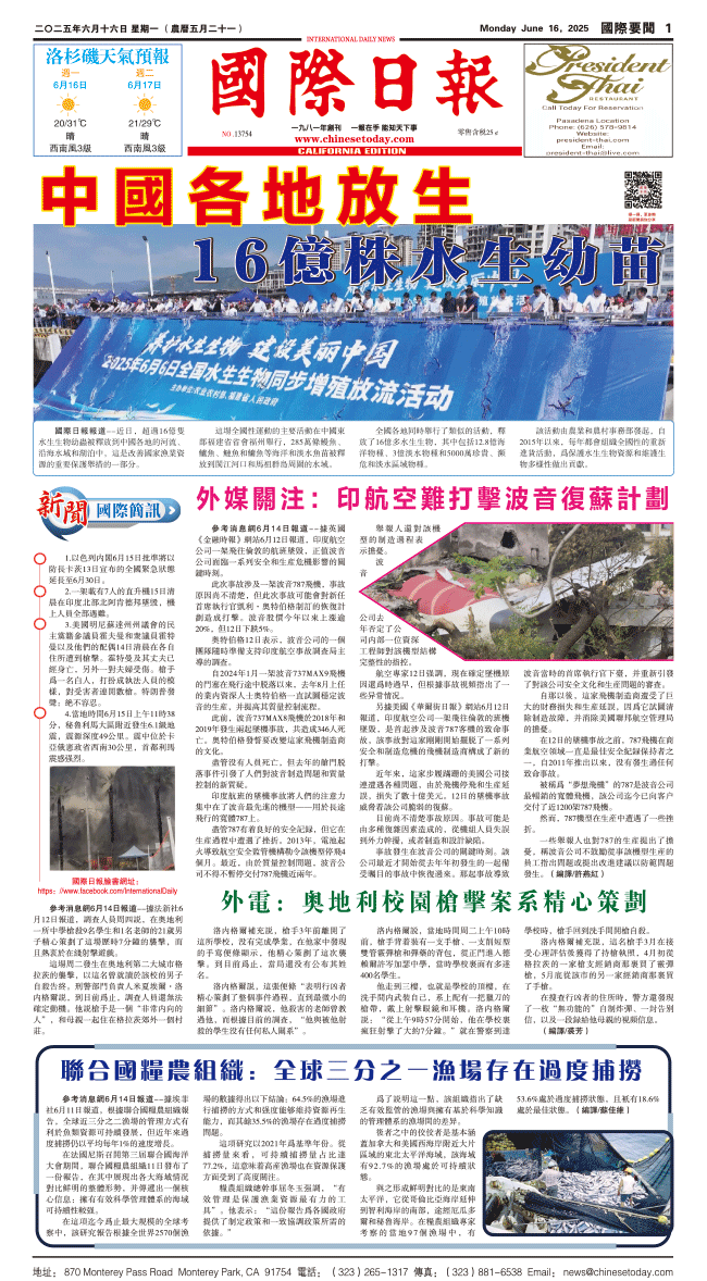 16日國際日報1-國際要聞 发布日期:2025/6/16 来源:國際日報 打印