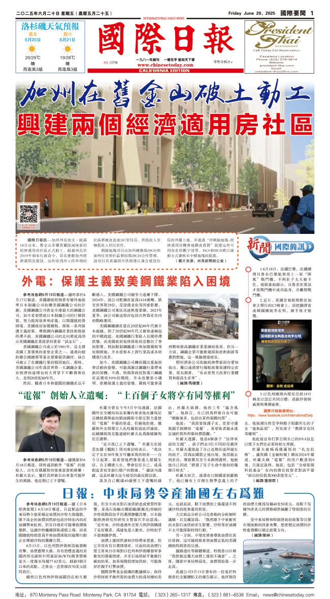 20日國際日報1-國際要聞 发布日期:2025/6/20 来源:國際日報 打印