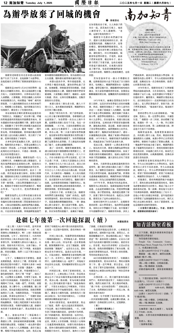1日國際日報12-南加知青 发布日期:2025/7/1 来源:國際日報 打印