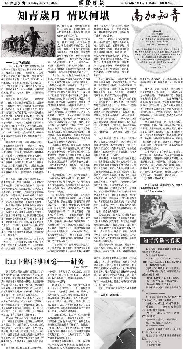 15日國際日報12-南加知青 发布日期:2025/7/15 来源:國際日報 打印