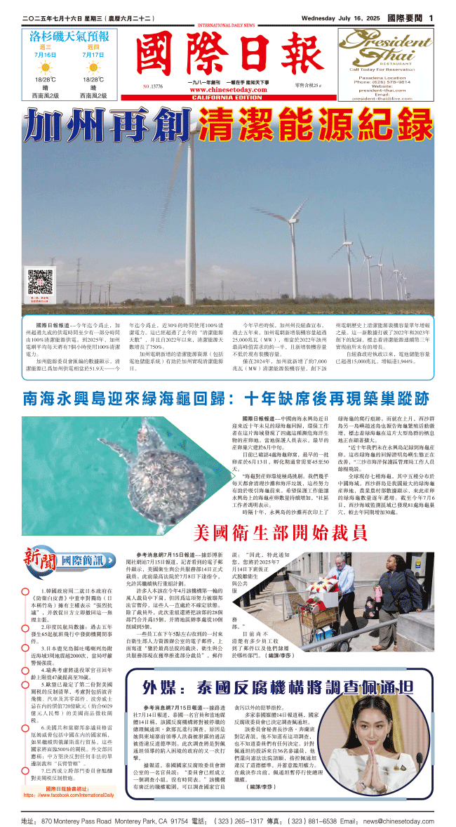 16日國際日報1-國際要聞 发布日期:2025/7/16 来源:國際日報 打印