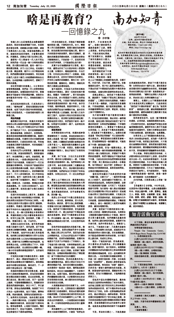 22日國際日報12-南加知青 发布日期:2025/7/23 来源: 打印