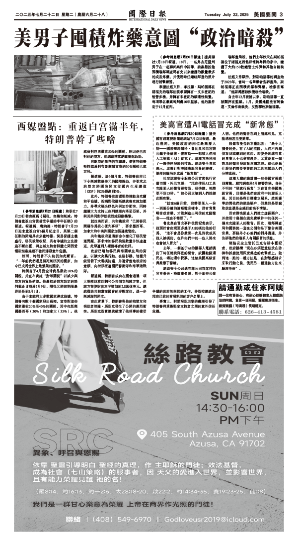 22日國際日報3-美國要聞 发布日期:2025/7/23 来源: 打印