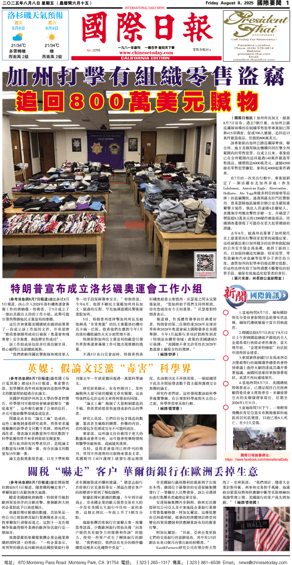 8日國際日報1-國際要聞 发布日期:2025/8/8 来源:國際日報 打印