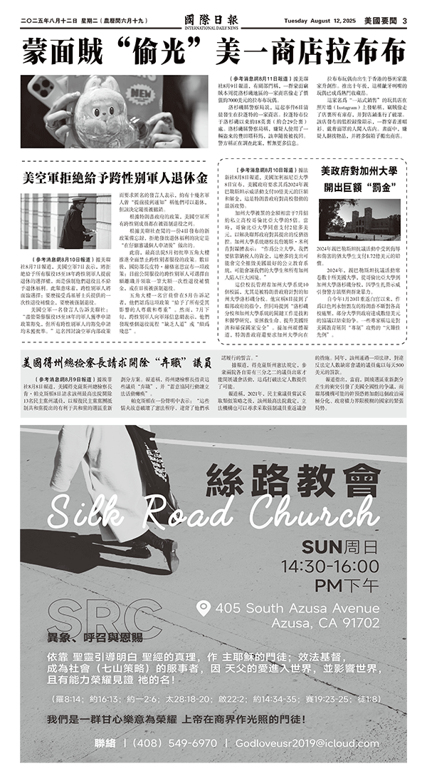 12日國際日報3-美國要聞 发布日期:2025/8/13 来源: 打印